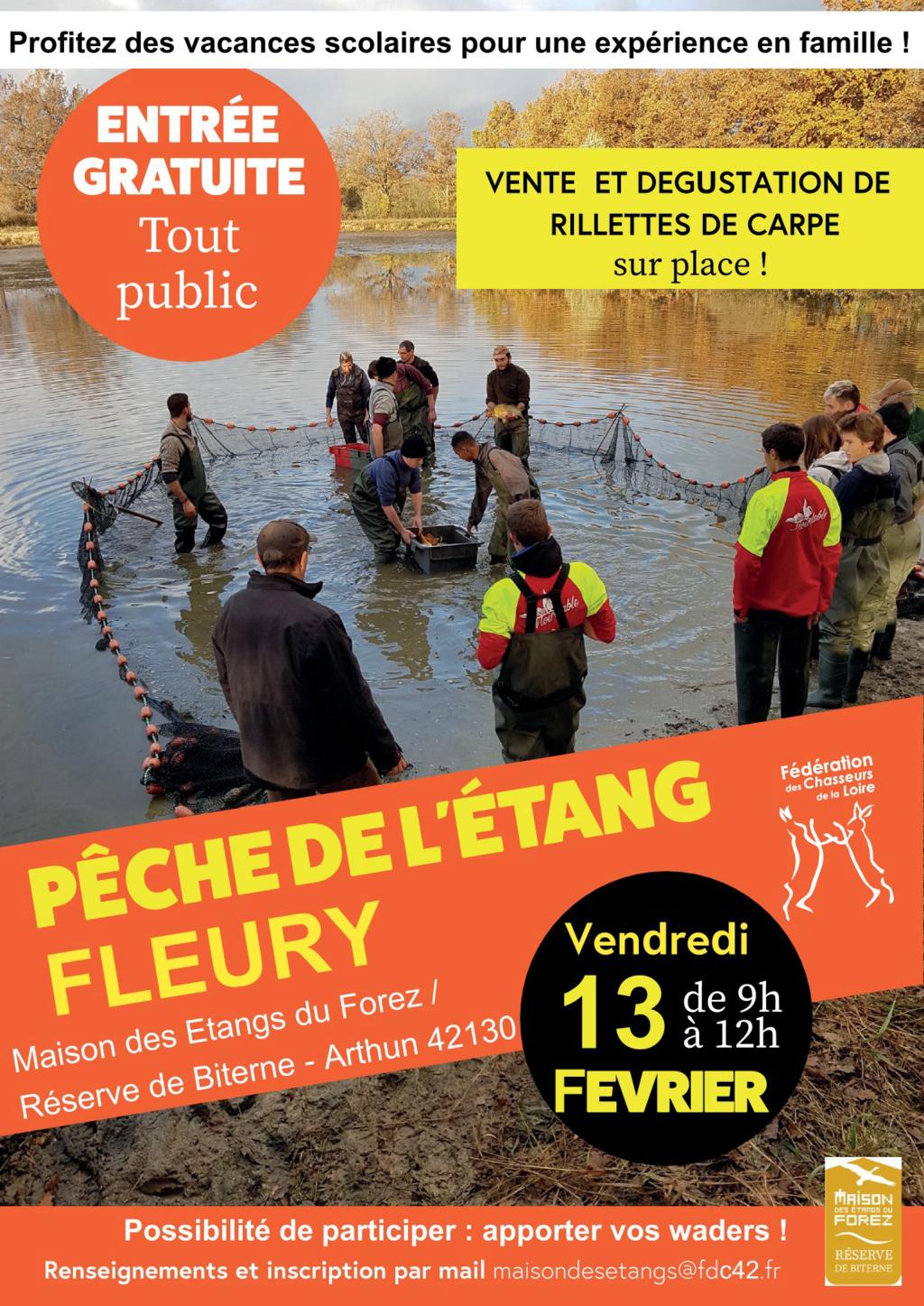 La Réserve de Biterne vous invite à assister à une pêche au filet sur l’étang Fleury le vendredi 13 février 2026, un moment convivial et authentique au cœur des étangs du Forez.